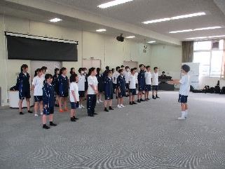 学級役員の認証です。学級役員は呼名されその場に立ちます。