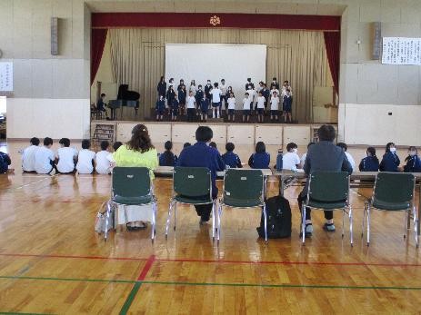 アンサンブルは、和楽器のお琴、しちりき、洋楽器のバイオリン、ピアノで、PTA会長、元会長やその音楽活動仲間の方々に演奏していただきました。貴重な体験でした。