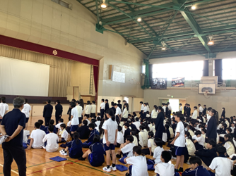 2月23日(金)学年末テストの最終日の午後、中学校生活について小6児童に対して生徒会役員と教員が片田小、櫛形小を訪問し、説明しました。