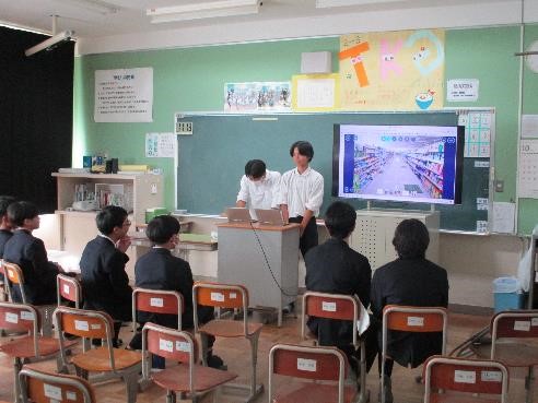 事業所ごとにパワーポイントを用いてプレゼンをしました。20ほどの事業所の担当者の方や保護者の方、1年生の生徒のみなさんの前でしっかりプレゼンできました。本校としては初めての取り組みでした。身近い時間の中でよく頑張りました。