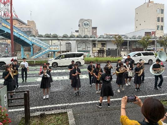 12日の津祭りパレードに吹奏楽部が出場しました。