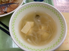 湯葉のすまし汁 よくわからないので湯葉をすくいおわんにくっつけた