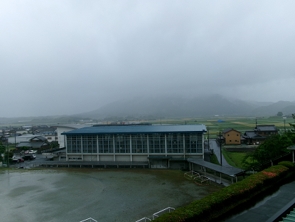 今日の校舎の4階の窓から見える長谷山。