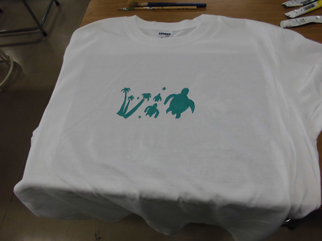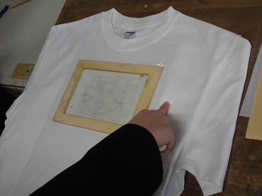 シルクスクリーンという技術を使ってTシャツに印刷します。