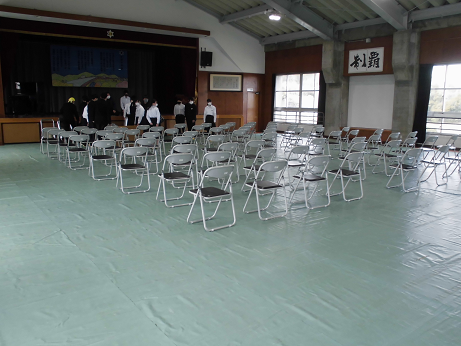講堂では2年生が卒業式の会場づくりをしてくれていました。