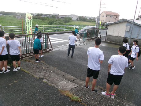 PTA等で交通安全の街頭指導をしていただくとともに、生徒会では恒例のあいさつ運動を行いました。