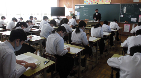 教室には緊張した空気が流れています。