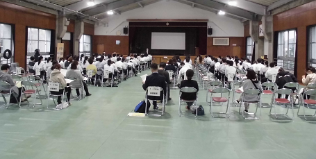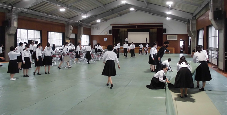 昨日の資料綴じ、今日の会場づくりともに3年生の生徒たちが行いました。