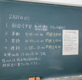 今日から1・2年生は学年末テスト。