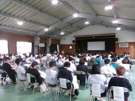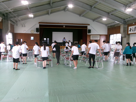 今日は3年生A組の生徒たちが4限目にシートひいたり、椅子を並べたり、扇風機を設置したりしてくれました。