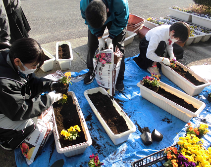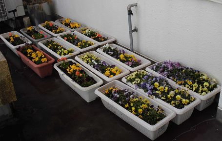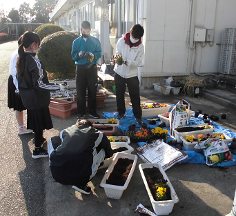放課後、生徒会本部役員がプランターづくりをしてくれました。