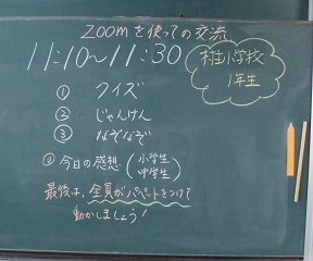 保育実習に変わる試みとして、校区内の小学校1年生とのオンライン交流です。