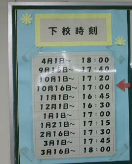 本日より完全下校の時刻が17:00になります。