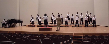 今日はハーモニーホールをお借りしての、合唱コンクール中間発表会。
