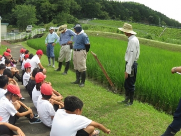 9月6日地域の方の協力を得て、学校の田んぼで、稲刈りをしました。鎌を手に、一株ずつ刈りました。123kgのお米がとれました。
