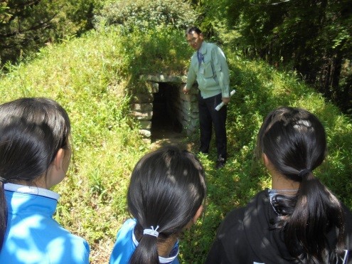 日本でも珍しい形状である、国史跡の明合古墳へでかけ、現地学習をしました。歴史の深みやおもしろさを感じることができた子ども達が、これからの時代をつくっていくのです。