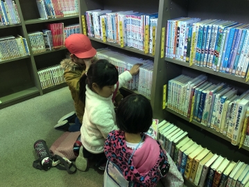 説明を聞いた後は、自分のカードを使って本を借りました。どの本を借りるか迷っていました。