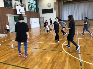 4限目に体育館でケイドロとドッジボールを行い、お家の人と一緒に汗を流しました。