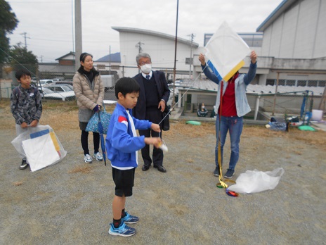 東観中学校区特別支援学級交流会で凧作りをしました。坂井田・世界凧博物館の館長、坂井田茂さんを講師に迎えました。世界の凧をいくつか見せてもらい、凧作りを行いました。