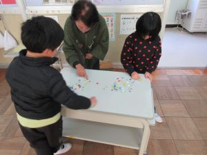 ↑おはじきコーナーでは、たくさんのおはじきのうれしそうに遊ぶ姿が見られました。