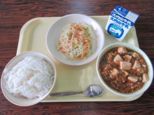 【献立】麦飯、麻婆豆腐、バンサンスー、牛乳