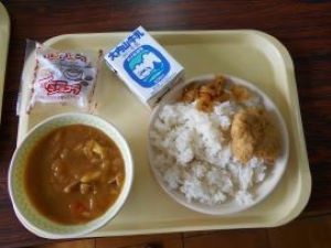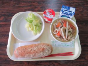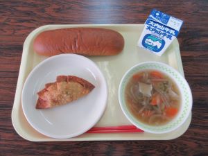 今日は、子どもたちの大好きな揚げパンでした。抹茶の揚げパンときな粉の揚げパンは、多くの児童生徒から人気のあるメニューです。