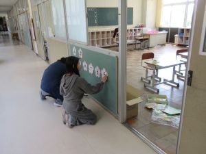 ↑1年教室の飾りつけもしてくれました。みんなで新1年生が気持ちよく学校に来られるように準備をしました。