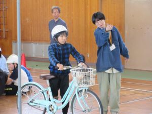 ↑6年生は実際に自転車に乗って、走行訓練をしました。