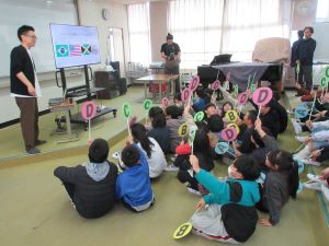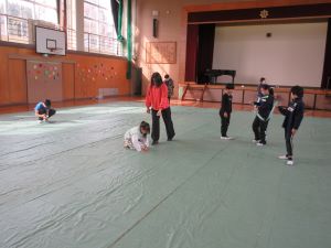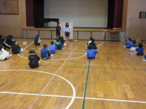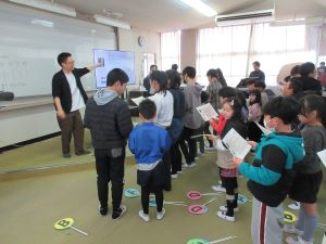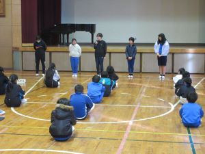 ↑最後にお楽しみの時間ということで、児童会役員がゲームを用意してくれました。今回は「ジェスチャーゲーム」でした。役員さんの動きを見て、みんなで頭をひねりながら考える姿が見られました。