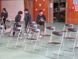 ↑6限目には3年生も応援に来てくれて、みんなで椅子出しをしました。壁面掲示も出来上がり、しっかりと会場の準備が完成しました。