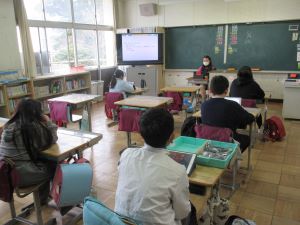 6年生児童が、榊原小学校の5・6年生と、2回目の英語交流を行いました。