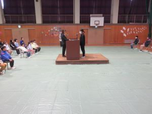 ↑みんなで、国歌・校歌を歌いました。きれいな歌声が響きます。