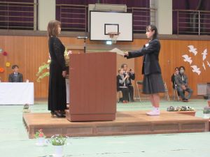 ↑一人ひとり、校長先生から卒業証書を受け取りました。