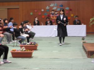↑退場の練習です。在校生が拍手で送りだします。いよいよ卒業式も目前ですね。