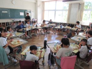 今日は1年生と6年生が一緒に給食をいただきました。人数も多くなったせいか、普段以上に楽しい雰囲気で給食を食べる姿が見られました。