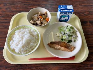 【感想】鮭の生姜焼きは、ご飯にあっていておいしかったです。煮物の高野豆腐が柔らかかったです。