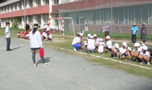 ↑チームごとに並んだら、入場の練習です。どのチームも6年生を中心にしっかりと流れを確認していきました。