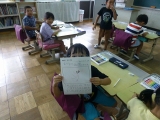 1年生が生活の時間に、朝顔の種の観察をして、紙に絵を描き、