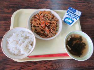 【献立】麦飯、みそ焼うどん、ごまスープ、牛乳