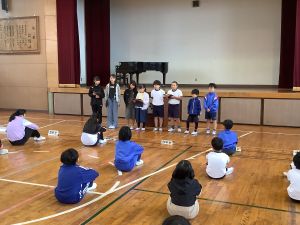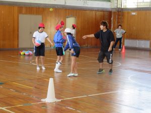 ↑先生が子どもたちにルール説明を行っていました。6年生の子たちに実際に動いてもらいながら、丁寧に確認をしていきます。