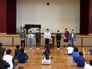 ↑後期児童会役員と委員会の委員長が、着任の挨拶を行いました。