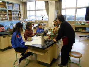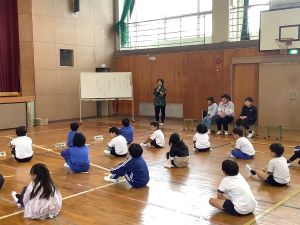 ↑続いて高学年が体験をさせていただきました。自由にたたいた後、みんなでリズムを合わせてたたいていきました。音がそろうと、周りから自然と拍手がとんでいました。とても素敵な時間になりましたね。