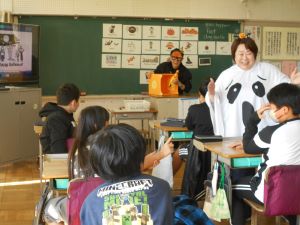 10月31日はハロウィンです。今日は、ALTの先生と一緒にハロウィンに関する授業を行いました。“Happy Halloween!”と言いながら、単語を練習したりビンゴをしたり、楽しい授業でした。