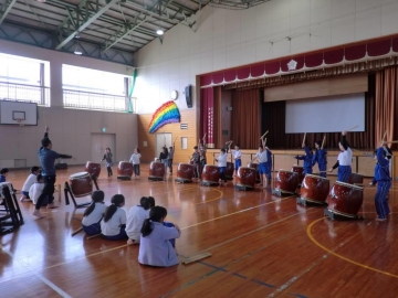 日(火)に、和太鼓奏者の服部博之さんに、和太鼓の体験講座をしていただきました。全員で音を合わせる難しさや音を響かせることの難しさを感じながらも、「みんなできる。」を信じ、音が一つになった心地よさを教えていただきました。和太鼓の魅力に出会った素敵な体験講座でした。