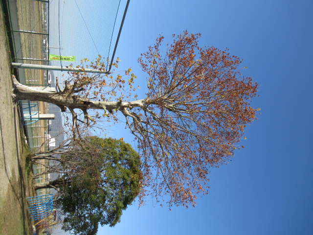 本校のシンボルツリー「プラタナス」も色づいています。