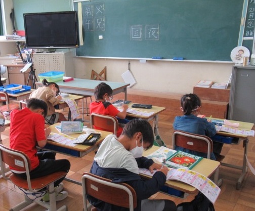 国語の漢字に一生懸命とりくんでいます。集中力すごい!