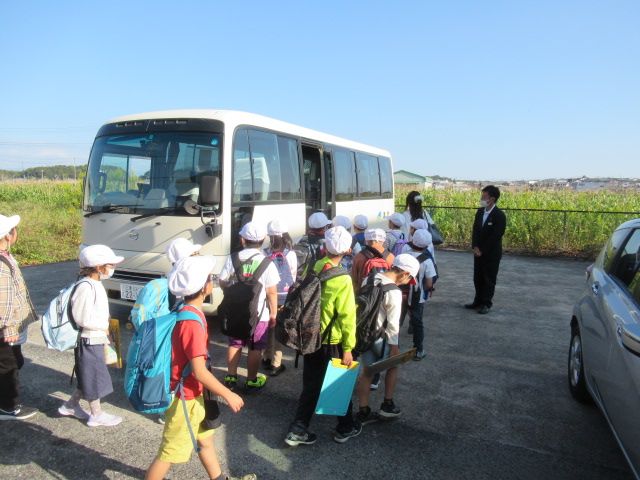 秋晴れの中、津市内の施設の見学に出発しました。