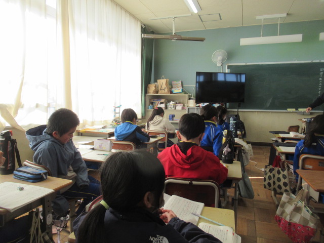 国語の時間、詩の学習をしています。まどみちおさんの詩、題名「にんじん」 おふろあがり タイトルと内容のつながりを考えています。子どもたちからいろいろな意見が出され、大いに盛り上がりました。