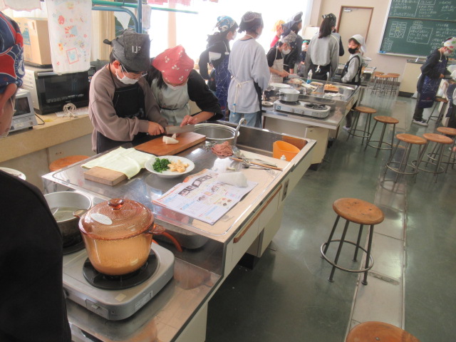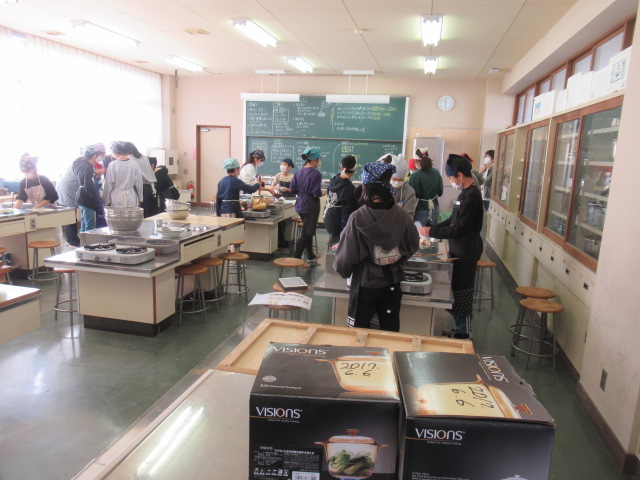家庭の時間には、ごはんとみそ汁を作っています。ごはんも耐熱ガラスの容器で上手に炊けました。調理室内にみそ汁のいい香りが漂っています。今日は2食たべれそうですね。