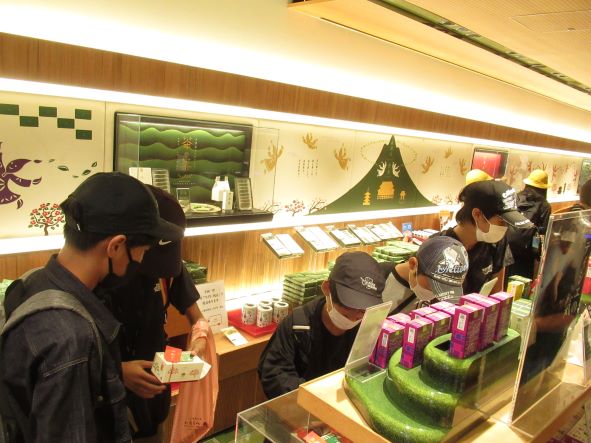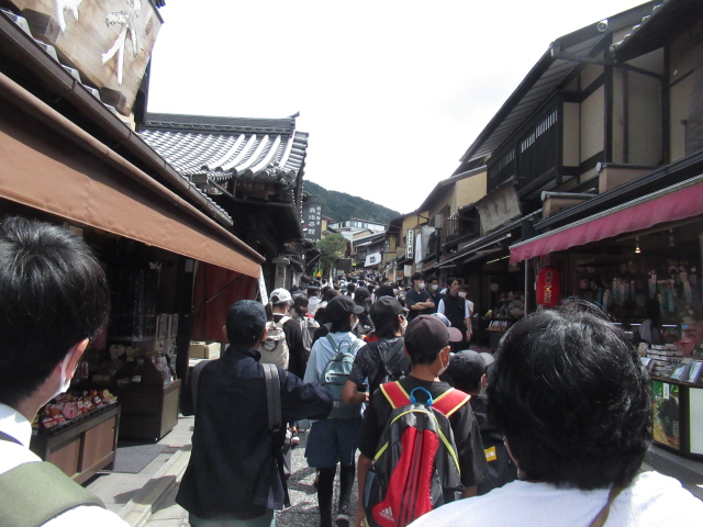 清水寺周辺でおみやげを買いました。こどもたちは、家族へのおみやげを一生懸命選んでいました。たくさんの観光客でしたが、それでも例年より少ないとのことでした。